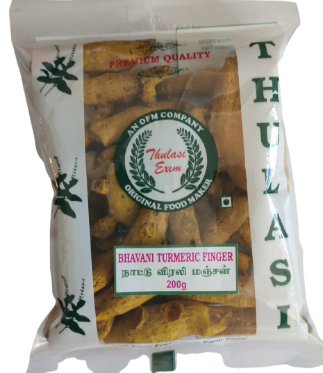Bhavani Turmeric Finger (Kasthuri Manjal) – 200g is pure wild turmeric sourced from Bhavani, Tamil Nadu. Traditionally used for skincare and Ayurvedic treatments, it helps brighten skin, reduce acne, and improve complexion. Chemical-free and suitable for all skin types.