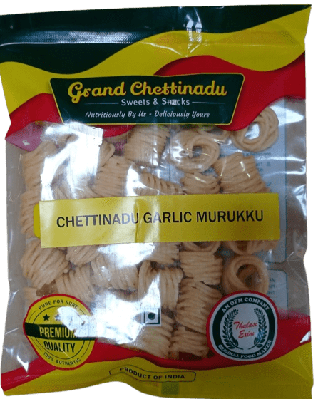 Next Product Grand Chettinadu Garlic Murukku – 125 g Category: Grand Chettynadu Snacks Additional information Reviews (0) Additional information weight 125g Reviews There are no reviews yet. Be the first to review “Grand Chettinadu Garlic Murukku – 125 g” Cancel replyYou must be logged in to post a review. Opens in a new window Tweet This Product Opens in a new window Share on Facebook Opens in a new window Pin This Product Opens in a new window Mail This Product Related products Quick View Quick View Grand Chettynadu Bombay Mixture -125 g Quick View Quick View Grand Chettinadu Manalmedu Mullu Murukku – 125 g Quick View Quick View Chettinadu Bitter Gourd Chips- 125 g Quick View Quick View Grand Chettinadu Manapparai Suthu Murukku Spicy – 125 g