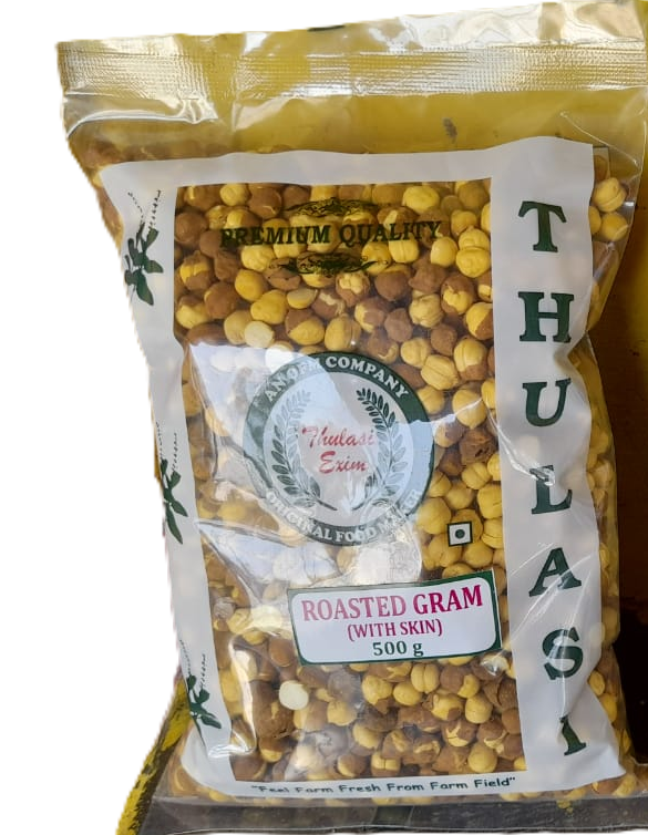 Buy Roasted Gram (With Skin) 500g – crunchy, protein-rich whole chana with skin. Ideal for snacking, chaats, and traditional Indian recipes. Rich in fiber, iron, and antioxidants. No preservatives. A wholesome, ready-to-eat superfood