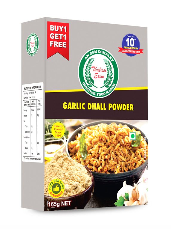 Thulasi Garlic Dhall Powder honors this legacy by preserving the flavor and soul of homemade podi in a shelf-stable format.