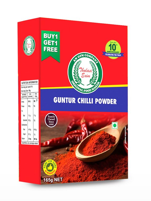 Thulasi’s commitment to sourcing from Guntur ensures that every pack reflects the intensity, purity, and tradition that spice lovers expect. It’s not just chilli powder—it’s a celebration of bold flavor and culinary heritage.